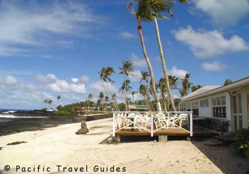 Simple rooms in large extended house overlooking the white sandy beach at Fagagogo. close to the airport. Great coastal views, quiet location and large restaurant. Popular nightspot on weekends when locals come for dancing and music.