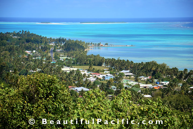 Arutanga Village on the west coast is the main settlement with a lovely white church, wharf, post office, bank, supermarket, restaurant and petrol station. There is no beach at Arutanga, which has a deep water harbour, but the beach begins less than a mile to the north at the village of Ureia with its colourful houses along the main road and large playing field. Outrigger canoes can usually be seen fishing in the lagoon and swimming is OK here although snorkelling not so good.