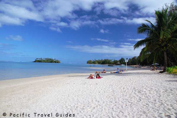 • The Beach:    Excellent - deep, fine white sand, stretches along Muri Beach