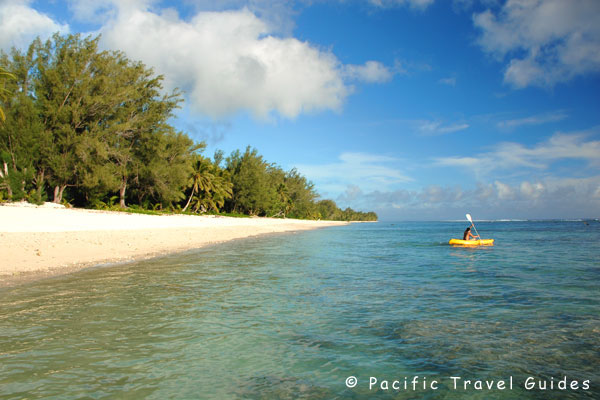 The villas are located right on the beach edge tucked amongst coconut palms. The beach here is quite deep meaning even at high tide, there's plenty of beach to enjoy. Swimming is OK at high tide but at low tide the lagoon is very shallow - in fact, you can walk right out to the lagoon edge here in ankle deep water. There are deep spots for snorkelling at high tide. The villas are adjacent to the Manuia Beach Hotel.