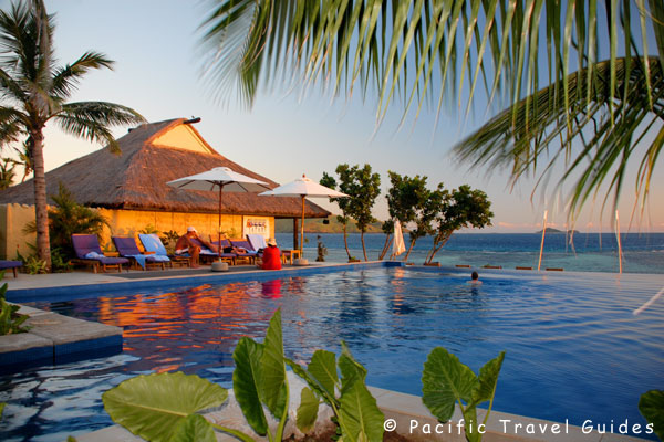 The resort is raised twenty or so metres above the beach offering lovely views over the lagoon where sea birds and locals fish for small bait fish and there's excellent offshore snorkelling, lots of activities, hiking trails and above all else, a secluded holiday feel.