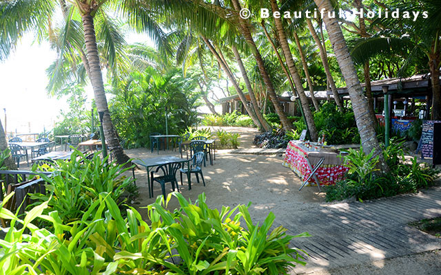 Set in landscaped gardens, the resort features an attractive swimming pool and large restaurant overlooking the beach with a canopy of trees overhead. On site scuba diving with PADI courses and easy access to several excellent beginner reefs around Treasure Island make this a good spot to learn scuba.