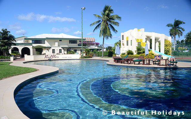 Raffe Hotel & Resort Nadi is the ideal airport hotel with spacious grounds, a large swimming pool with water slide and just 3-minutes drive to the airport yet away from the airport flight path and noise. Raffe Hotel was previously known as the Fiji Gateway Hotel . The hotel makes a great base for exploring Nadi and the offshore islands.