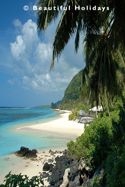 Upolu is the main island of Samoa with a good coastal road and lots of scenic lookouts, waterfalls and beaches along the way. It takes just over 3 hours to drive right around the island. Heading east from Apia, the coast is tropical and rugged with pleasant mountain views and small villages along the rivers and a few picturesque beaches but few swimming opportunities.
