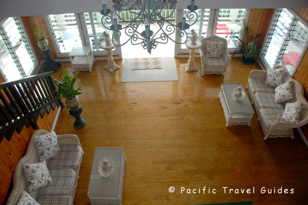 The original guesthouse is a three storey house with reception, cafe, large communal lounge and spacious veranda overlooking the road and harbour.