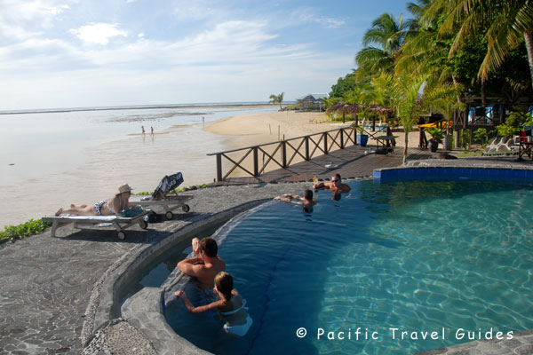 Le Lagoto Resort Samoa is a neat boutique resort with a lovely raised swimming pool overlooking the ocean as its focal point. Fales are staggered along a rocky bluff, there's a beautiful traditionally designed restaurant, lots of organised tours, attentive staff and a scuba diving and snorkel operator across the road.