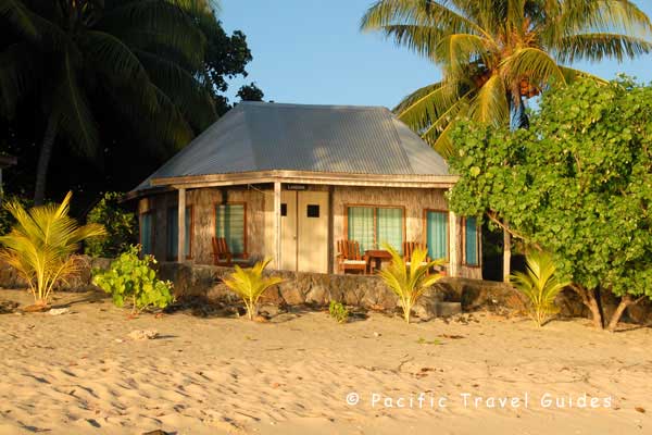 Accommodation at Stevenson's Beach Fales is in simple open sided traditional style beach fales with a mattress on the floor, mosquito net over the top and a small private deck overlooking the beach. Two fales have en-suite bathrooms and the remainder share communal hot water bathrooms with flush toilets close by.