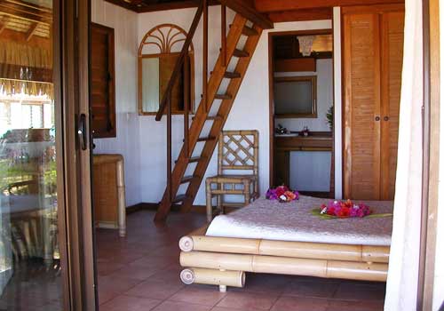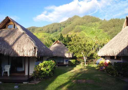Set on a picturesque beach on the west coast of Moorea, close to Hibiscus and Tipaniers, with delightful bungalows in a pleasant garden setting. All bungalows feature main bedroom, small hot water bathroom and upstairs mezzanine room with double or two single beds.