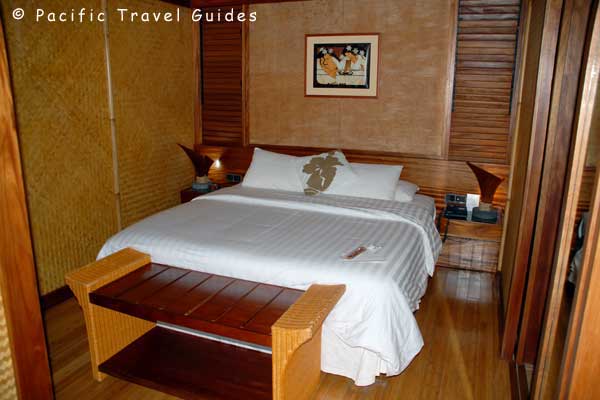 Overwater bungalows are located on two tiny islets with just the veranda sitting "overwater", Some have mountain and lagoon views, others have ocean views. All overwater bungalows have direct access into the lagoon.