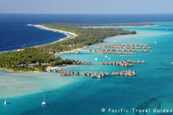 Le Meridien Tahiti is built on a tiny flat motu on the eastern side of Bora Bora Lagoon and has been well landscaped providing a natural inner lagoon filled with tropical fish which also acts as a turtle sanctuary.