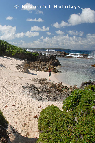 The southern coastline is more wild. At Hufangalupe there's a lovely coastal walk along high sea cliffs with an impressive natural coral bridge you can walk over. Another attractive coastal walk is from the Tongan Wildlife Centre (small bird park and botanical garden), half way along the south coast. The coastline here is uplifted with sharp jagged rocks and are lots of small white sand cove beaches between. Still further west, at the village of Houma, are the hugely impressive blowholes. Come at high tide on a windy day and walk along the coastal path to see a long succession of blowholes. There are almost 100 in all, the largest plumes reaching up to 30 metres high.