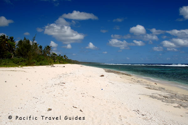 Part coral sand beach on west side of Tongatapu - lagoon not great for swimming as too many sharp coral heads.
