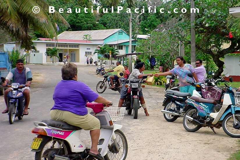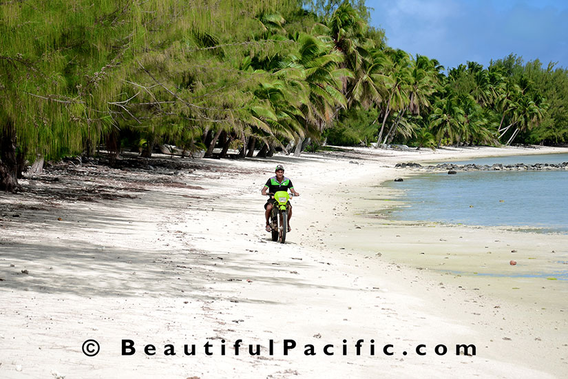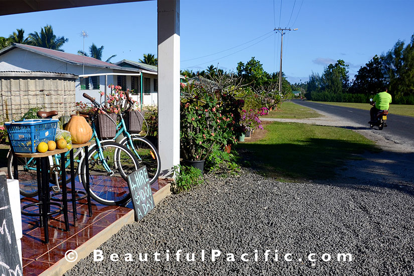 The coastal road of Aitutaki is mostly bitumen but in places along the south and east coast the road is still sandy. There is little traffic on Aitutaki and few cars or trucks - most people get about by moped. Roads meander throughout central Aitutaki where there are several small villages, the high school, hospital and family plantations.