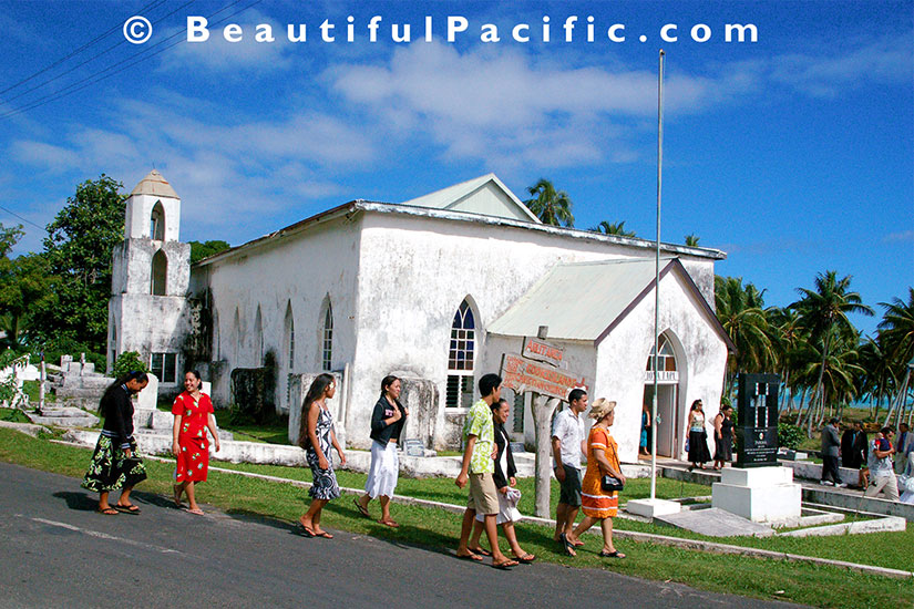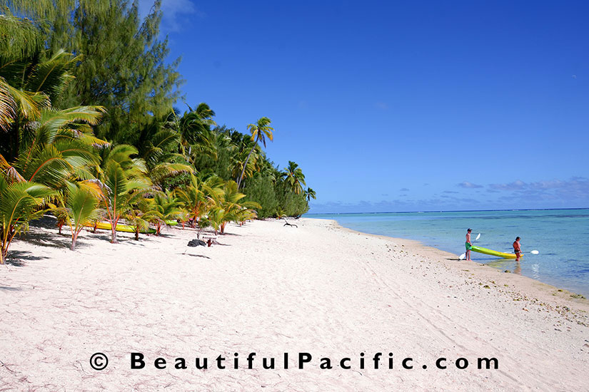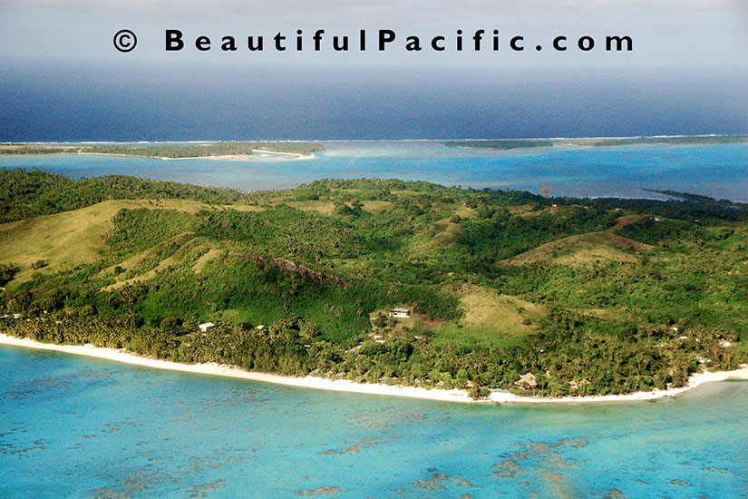 Arutanga Village on the west coast is the main settlement with a lovely white church, wharf, post office, bank, supermarket, restaurant and petrol station. There is no beach at Arutanga, which has a deep water harbour, but the beach begins less than a mile to the north at the village of Ureia with its colourful houses along the main road and large playing field. Outrigger canoes can usually be seen fishing in the lagoon and swimming is OK here although snorkelling not so good.