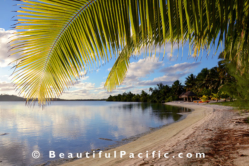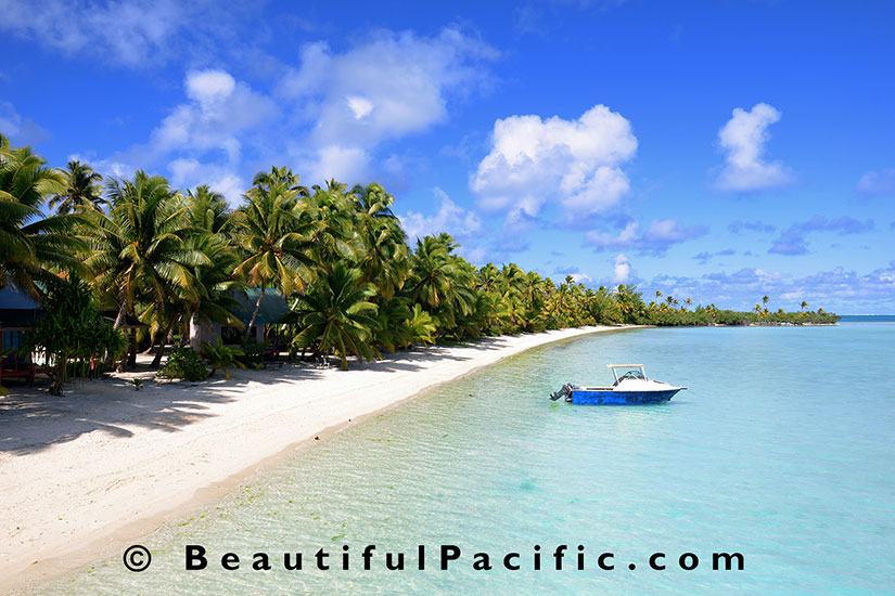 The north west coast has the nicest stretch of beach making it the most popular spot for a holiday on Aitutaki Island. The "sunset strip" includes a few small boutique shops, cafés and restaurants, several self-catering villa style accommodations including the wonderful locally owned Aitutaki Beach Villas with four villas right on the beachfront, and three luxury hotels all alongside an attractive sandy swimming beach. The white sandy beach with palm groves extends right up the north west coast and at the northern end is the islands best coral reefs for snorkelling (near the government marine fisheries) and the only strip on the main island where there's all tide swimming in the sea.