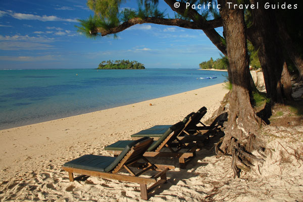 • The Beach:    Excellent - deep, fine white sand, stretches along Muri Beach