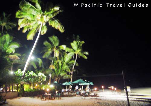 The beachfront Lagoon Terrace and ‘Barefoot Bar’ offer cocktails and happy hour, and the ‘Sandals Restaurant’ is open all day for lunch and dinner.  The menu is good and varied with light dishes under NZ$ 20 and grill dishes for an average of NZ$ 25.  Island Nights are put on twice weekly with dinner and entertainment in the price
