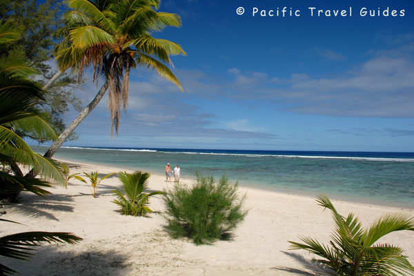 The villas are located right on the beach edge tucked amongst coconut palms. The beach here is quite deep meaning even at high tide, there's plenty of beach to enjoy. Swimming is OK at high tide but at low tide the lagoon is very shallow - in fact, you can walk right out to the lagoon edge here in ankle deep water. There are deep spots for snorkelling at high tide. The villas are adjacent to the Manuia Beach Hotel.