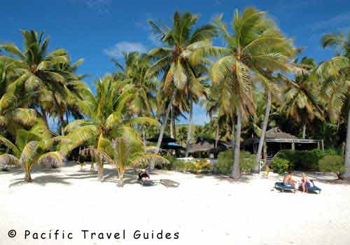 The beach infront of Tamanu Beach offers a wide sandy area backed by palm trees and extends for several kilometres along the west coast making it a great spot for walking. The lagoon is good for both swimming and snorkelling and the islands' best snorkelling reefs are located a ten minute walk along the beach.