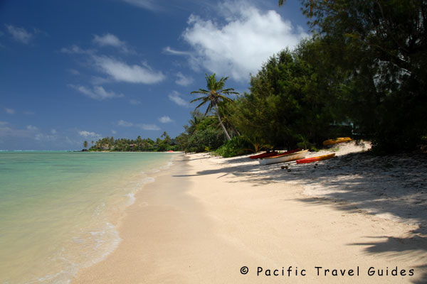 - The Beach: Excellent - deep, fine white sand, stretches along Muri Beach
