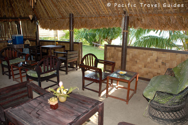 The Fijian bure style restaurant serves meals on demand with a distinct Asian flavour. Spring water from the nearby mountains is used (bottled water for drinking can be purchased on the property)