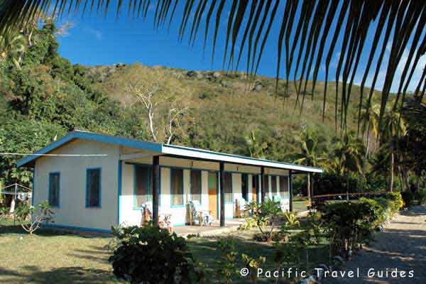 Coconut Bay offers private rooms in duplex bungalows (1 bungalow divided into two private rooms), each with a double bed, bunk bed and private but tiny en-suite bathrooms with flush toilet and cold water showers but no hand basin. The double beds are on the small side and rooms can get stuffy. There is also a 16-bed dormitory with bunk beds for single travellers. The beachfront is picturesque with white sand but the lagoon is too shallow for snorkelling or swimming. There are several mountain trails, one of which leads 20 minutes to another protected bay with good snorkelling and swimming.