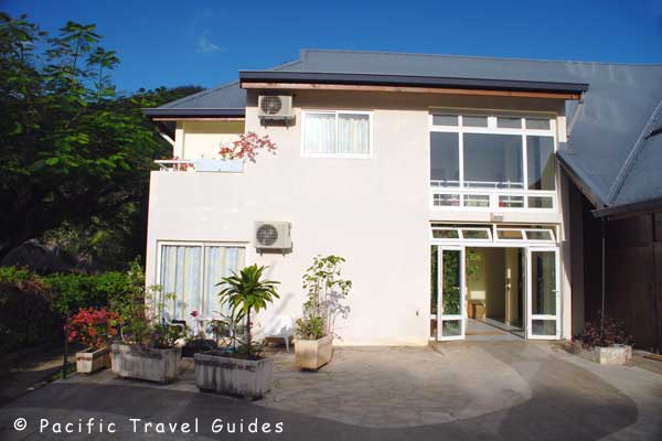 The property itself is rather cramped with limited parking but there's a lovely Italian style restaurant under a huge Fig Tree serving excellent Pizzas and overlooking the ocean (and sunsets). There's a good size pool and the newer two-storey hotel block has sanitary clean air-conditioned rooms with kitchen facilities. Bungalows are charming with thatch roofs although a little dated and are set back in the gardens.