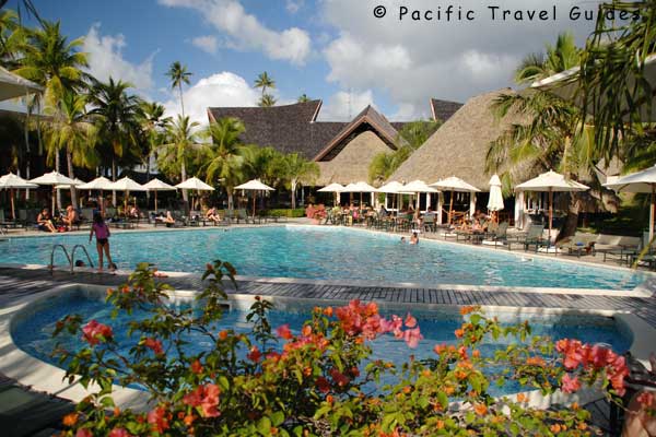 The huge reception area with restaurant and bar offers contemporary design mixed with Polynesian colours. There's a Polynesian dance performance three times a week, one on the beach and two in the restaurant.
