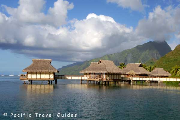 Overwater bungalows are located on two tiny islets with just the veranda sitting "overwater", Some have mountain and lagoon views, others have ocean views. All overwater bungalows have direct access into the lagoon.
