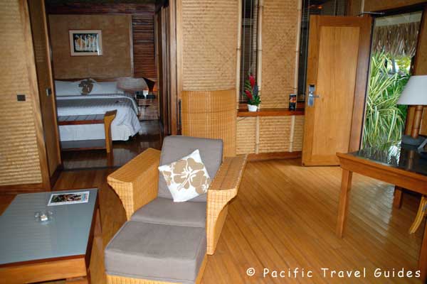 Lagoon Rooms are located in two connected two story blocks extending from the beach to mountain, each with partial ocean views. All rooms are air-conditioned and have private veranda. The Garden Bungalows are set in one row, staggered behind the Beach Bungalows. All bungalows are of similar interior design with a separate lounge and large bathroom.