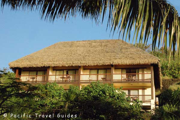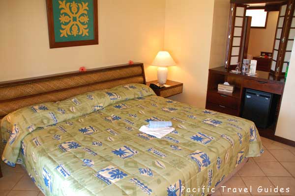 The Garden Rooms are located in a two story building surrounded by tropical landscaped gardens. The Ocean View Rooms are located in a two-storey building higher up on the hillside - those on the upper floor have lovely views out to the ocean, whilst those on the lower floor have partial ocean views being more obscured by the mature landscaping. All rooms have private veranda, king size bed and air-conditioning.