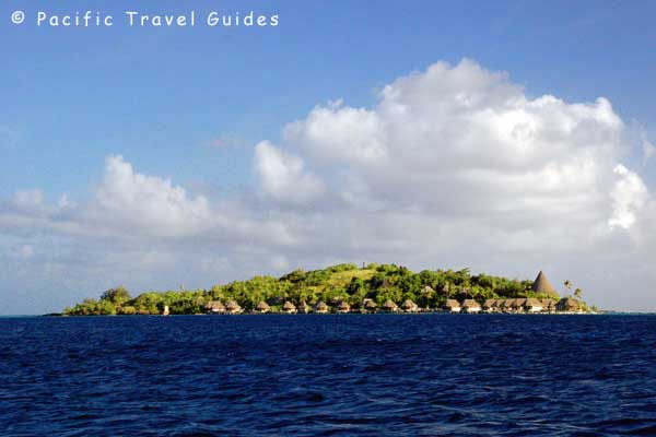 On a private island in the lagoon are the "island bungalows" located on a private island within the lagoon and accessible by a three minute boat ride from the resort beachfront. The small motu island has an impressive central restaurant serving exquisite food with each table overlooking the lagoon and the mountains of Bora. There's a picturesque but small sandy point for beach lovers and the island has steep hills with walking tracks are built high up on stilts in a wooded hillside offering great views overlooking the ocean or on the lagoon (note cobbled stone pathways and steep hills may be impractical for some guests).