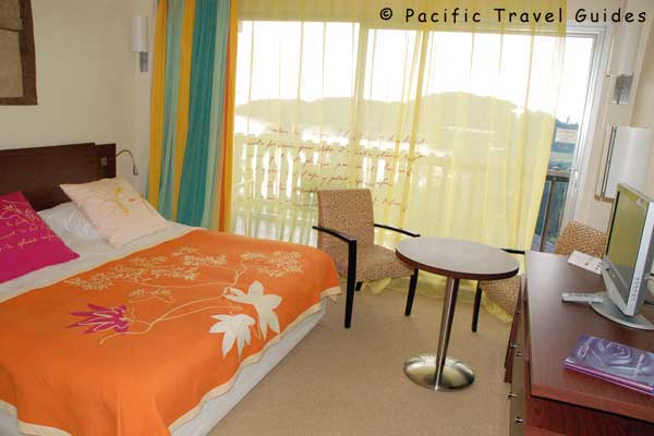 The Sofitel Tahiti Hotel offers modern comfortable rooms alongside a small beach close to the international airport. The uninspiring 60's style hotel façade with its eight storey cement building still exists but interior finishings and a mix of contemporary art and bright Polynesia colours make this a pleasant and affordable stopover.