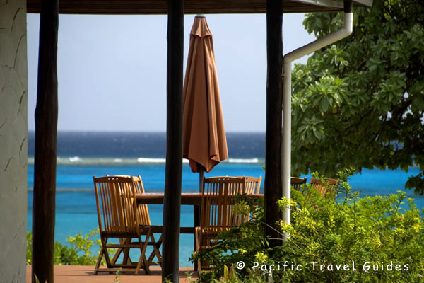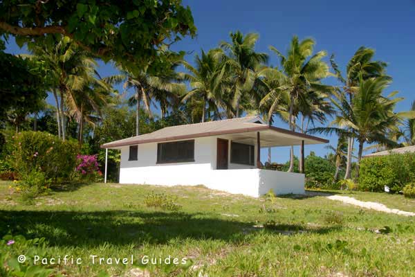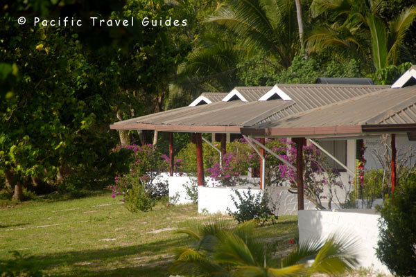 Accommodation is in twelve cottages set back twenty metres from the beachfront and well spaced apart for privacy. Cottages are identical in design with high ceilings and large open windows for optimum sea breezes and ventilation. Interiors are spacious with whitewashed walls decorated in Tongan artworks, King size bed (two single beds joined), wardrobe and writing desk with a view to the ocean. The en-suite bathroom has a good size shower although water pressure can be low. All cottages have a covered veranda at the front with beach views and path leading down to the beach with sun loungers and small thatch hut for shade.