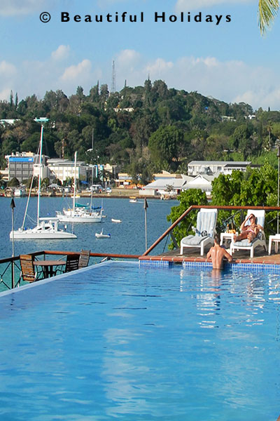 The main holiday region for both couples and families is on Efate Island, and in particular around Port Vila. The town offers casinos, waterfront restaurants and bars as well as a huge colourful market that never closes although the major concentration of resorts are along the beach-less lagoon around Port Vila and along the southern coast of the island. There are plenty of tour companies in Port Vila for exploring the island and it is even possible to take day tours to the outer islands of Tanna (volcano tours) and Pentecost (land-diving tours) to see those islands' unique attractions.